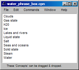 A Phrase Box can be created using items from an existing map by selecting a List menu command. The Phrase Box will automatically be filled with the appropriate items.