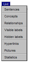 The items that appear on the List menu depend on the kind of map. The menu shown above contains items that appear for a Concept map.