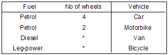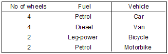 Consider the table model shown here (it is provided in the file 'Vehicles table' in the Examples folder).