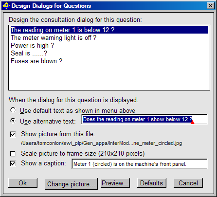 When you select from the 'Build' menu the 'Design questions' command, you get this dialog: